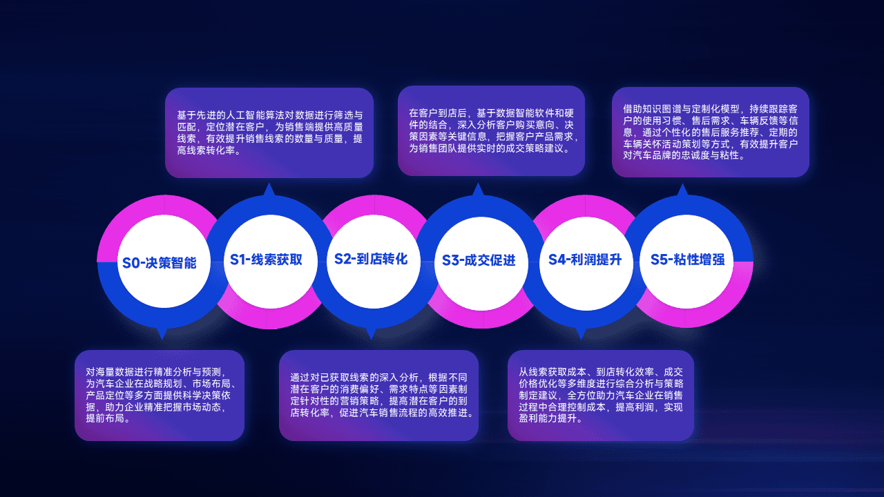 通过拓宽潜在客户来源、、、、优化线索分配并提高到店转化率,,以增强销售效率。。。。同时,,,,利用线索数据不断优化分析模型,,有效提升转化率,,,扩大营销影响力。。。